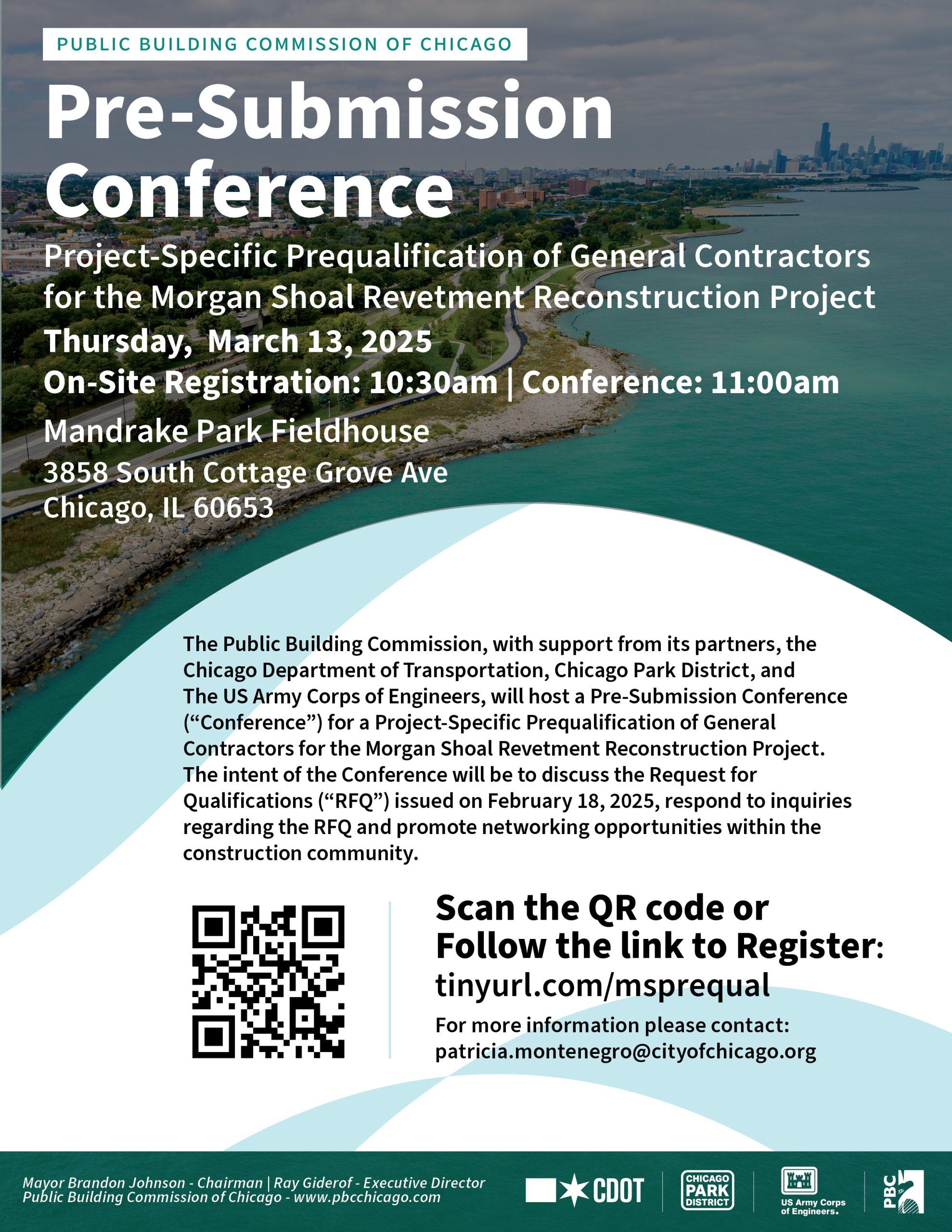 The PBC along with its partners, CDOT, Park District, 7th Ward Alderman Gregory Mitchell, Milhouse Engineering and Construction, Inc., and WSP USA, hosted a community meeting to go over a Feasibility Study for the upcoming Shoreline Restoration 71st to 75th Street project.